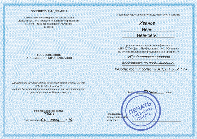 Аттестационный экзамен по промышленной безопасности проходит в центральной (территориальной) аттестационной комиссии Ростехнадзора в форме тестирования. Если аттестация по промышленной безопасности пройдена успешно, выдается копия протокола заседания аттестационной комиссии Ростехнадзора.